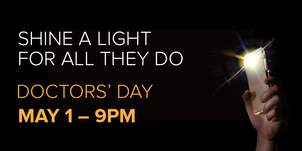 - Post to your social media channels, and tell us why you’re shining your light for doctors using #DoctorsDay and #ShineALightForThem